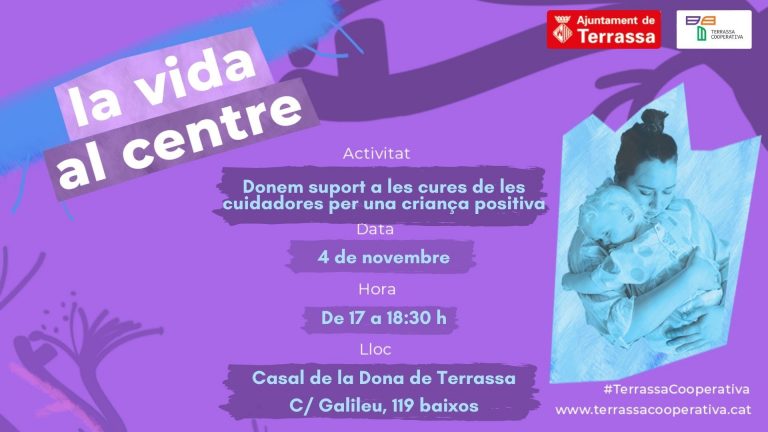 “Donem suport a les cures de les cuidadores per una criança positiva” que es farà al Casal de la Dona de Terrassa